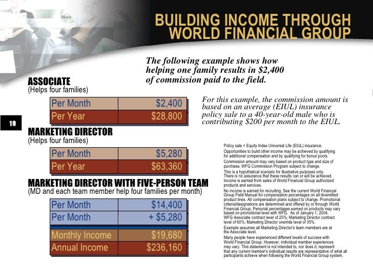 Say what you want about the company but theres no denying that it is a huge global force and one that requires close examination. Only 200000 of that came from actually selling insurance most of which probably came from personally selling to new recruits though our recruiter didnt make the distinction. Avis de salariés chez WFG sur les thèmes de la culture dentreprise des salaires des avantages de léquilibre vie professionnellevie personnelle de lencadrement de la sécurité de lemploi etc.